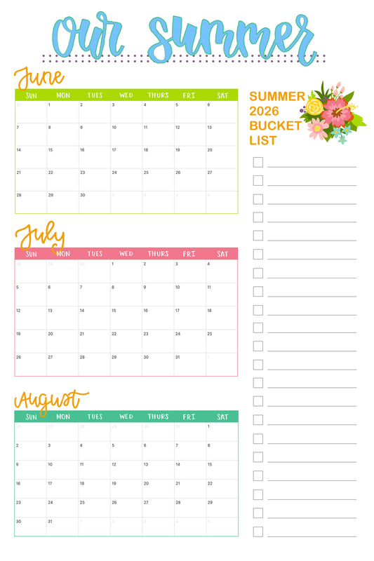 Summer 2026 Calendar