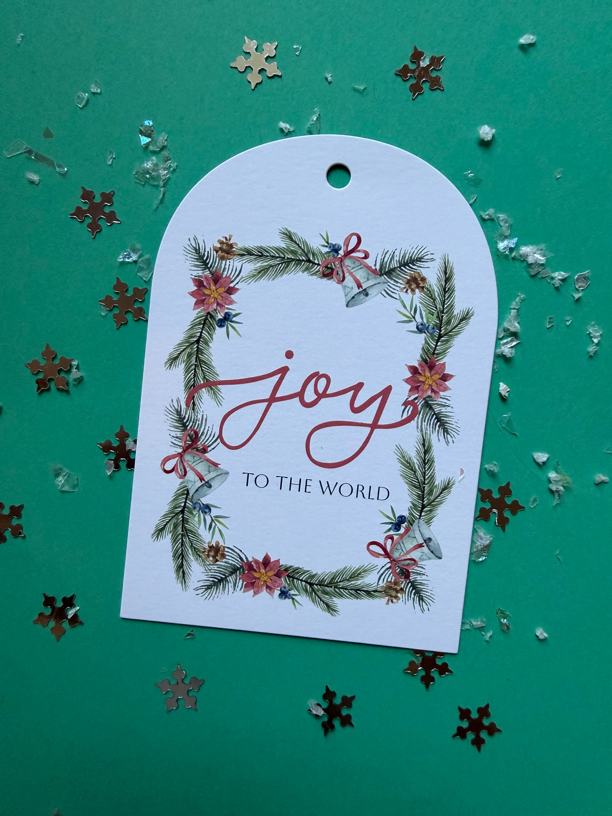 - Arched tag (2.75x4"): Merry Christmas; FaLaLa; Joy to the World